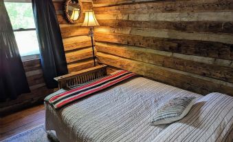 This authentic fully furnished cabin includes a full kitchen, full bath, living area and bedroom with adjoining space that includes a futon. The bedroom features a queen size bed and the futon folds out to a full size bed. All living spaces are on the main level. Linens are provided.