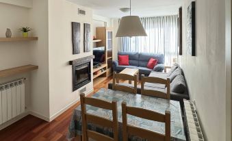 Appartamento con 1 camera da letto con letto matrimoniale (160x200), bagno completo, TV, camino, divano letto doppio di 1,40 m, cucina indipendente completamente attrezzata, terrazza e parcheggio privato. Dispone di asciugamani e biancheria da letto.