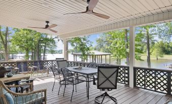 Welcome to our newly renovated (2022) Lake House! The house is a 4 bedroom/3.5 bathroom with a large back porch overlooking our 2-lift boathouse on the lake. It also has a private onsite boat launch, two floating piers, lower seating deck with benches, covered BBQ area, covered downstairs porch and a covered front porch.