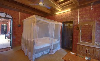 The stay was pleasant, rooms were average clean and food was great. The property is located in a cozy lush green space which makes you feel you are living in the middle of the forest and in an ancient setting. What could have made the stay perfect would be: 1. The property being mosquito free. 2. Washrooms having a shower/a few modern amenities (agreed that the property wants to give a rustic look but if you are calling yourselves a three star property and charging a hefty amount then make sure the amenities in the washroom are kept a little modern) 3. Ensuring the bed net is not torn 4. Keeping at-least two dustbins 5. Ensuring the tv is in working condition.