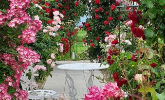 日帰り温泉、朝食提供食堂、夕食のお勧め食堂、朱鷺の観察場所など必要な情報が提供され助かりました。また、栽培されているバラが100種類以上あり、猫さん達もよって来て触らせてくれて、楽しい思い出ができました。