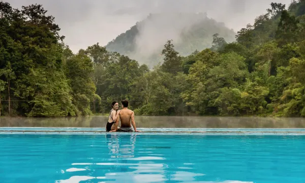 This was fabulous! Located in a lush green surrounding, it was an amazing place to scape. They had a pool that overlooked a lovely lake and the view of the surrounding mountains was fantastic- stunning and serene. The kids did ziplining and the course was right on the hotel grounds. We did a day trip from here to Erawan National Park. Highly recommend this place!