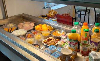 Petit déjeuner surtout sucré avec de bonne viennoiseries.