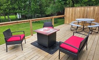 Added bonus is an indoor/outdoor space, huge deck with seating around a fire-pitt and dinning area.About pets:No pets allowed.About checkOut:Check out before 10:00 AM.About children:Children allowed: ages 0-17.About checkIn:Check in after 3:00 PM.About smoking:Smoking is not permitted.About minBookingAge:Minimum age to rent: 21.About events:No events allowed.