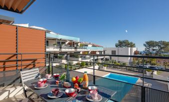Residence "Le Diamanti", su 2 piani, costruita nel 2021. Nella località, a 1 km dal centro di Saint Aygulf, posizione soleggiata in una zona residenziale, a 700 m dal mare, a 700 m dalla spiaggia. In comune: piscina ad angolo recintata (6 x 12 m, profondità 100 - 200 cm, disponibilità stagionale: 01.Giu. - 15.Ott. orari di apertura piscina: 09:00-20:00) con scaletta. Doccia/wc nell'area piscina. Nella casa: ascensore, deposito biciclette. Parcheggio. Negozio 700 m, shopping center 5.5 km, panetteria 700 m, 10 minuti a piedi dal centro, fermata bus "Saint-Aygulf La Poste" 800 m, stazione ferroviaria "Fréjus" 7 km, spiaggia sabbiosa "Saint Aygulf" 2 km spiaggia ciottolosa "Calanque des Corailleurs" 700 m, parco "Areca" 1 km, diving center 7 km, piscina termale "Thalasso de Port Fréjus" 7 km. Porto turistico 2 km, campo da golf (18 buche) 8 km, scuola di vela 8 km, maneggio 3 km, centro sportivo 1 km. Attrazioni nelle vicinanze: Aqualand, Lunapark 5 km, Fréjus 6 km, Saint Raphaël 8 km, Saint Tropez 30 km, Cannes 50 km, Nice 71 km. Rinomate località sciistiche: Auron, Isola 2000 150 km. Laghi famosi: Lac de St Cassien 45 km, Lac du Du Verdon 90 km. Sentieri escursionistici: Estérel 16 km, Sentier du Littoral 700 m. Prego notare: auto consigliata. Residenza con cancelli elettrici.