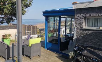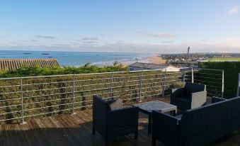 Overlooking Winston Harbor, Arromanches and Seine Bay, surrounded by a beautiful and large sea view terrace, and south