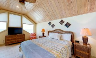 The beachfront bungalow is ideally located in the Gulf Beaches neighborhood where you can stroll or bicycle to the island’s best restaurants and eclectic boutiques. A private boardwalk whisks you over the dunes to the pearly white sands and turquoise waters of St. George Island.