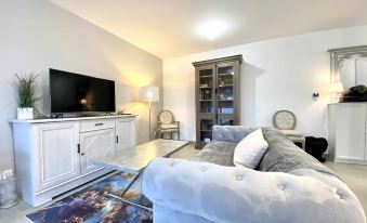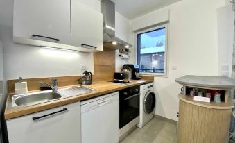 Salpa e vieni a scoprire questo nuovo appartamento di fascia alta con parcheggio sotterraneo. Al tuo ritorno, troverai un corridoio che conduce ad un bagno dal design accattivante, completo di zona toilette. L'appartamento dispone di un ampio soggiorno molto luminoso, perfetto per rilassarsi o divertirsi. La cucina è completamente attrezzata con comfort moderni, tra cui piano cottura, forno, microonde, lavastoviglie, macchina per il caffè e bollitore, assicurandovi di avere tutto il necessario per preparare pasti deliziosi.