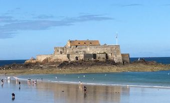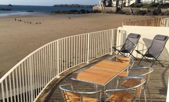 L'appartement est situé idéalement en bord de plage. une petite terrasse très ensoleillée nous permet de profiter au maximum des soirées et d'assister à de merveilleux couché de soleil. par la plage on peut aller à St Malo à pied par marée basse.