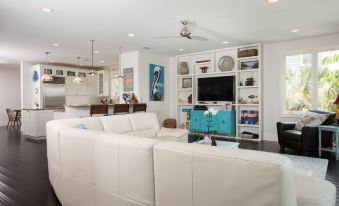 This home has everything you need for a large family or group to enjoy. Very spacious and comfortable, beautifully decorated and a prime location right on the water. Restaurants and a convenience store are right across the street. The perfect beach access is about six houses away. Not that you want to leave the house with fishing off of the two docks in your backyard and a comfortable hangout space under the house away from the sun. The fish tank was a huge hit with the adults and kids alike. Kitchen fully equipped, large oversized bedrooms and baths so everyone had their own space. Owner was awesome to work with when we needed to add an extra day and honestly wished we could have stayed longer! Truly enjoyed our stay and will be back!