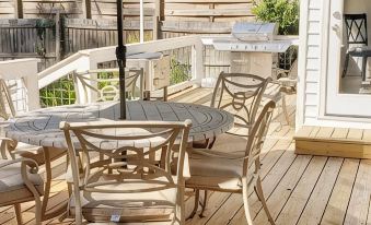 This coastal chic home is fully equipped and has decorator touch furnishings. Enjoy the spacious outdoor deck with gas BBQ for dining al fresco, or sipping a cool drink on a lounge chair.