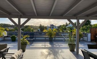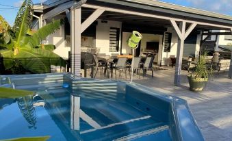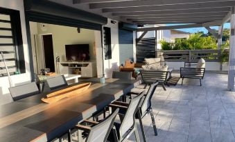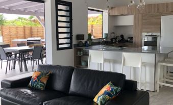 Tout est encore plus beau que sur les photos, la maison est neuve, une grande terrasse au calme avec vue dégagée, coin salon et salle a manger extérieurs avec barbecue top. Équipement complet en cuisine, propreté irréprochable. L'emplacement est parfait (Plage Caravelle a 5mn, Gosier et St Anne a 10mn, St Francois 15mn), voiture nécessaire. La propriétaire Cathy fut charmante, attentionnée et disponible.