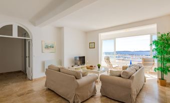 Apartment spacious enough for 4, very bright because crossing. On the top floor in a building from the 60s 70s very well maintained and quiet, the view is very beautiful on the central beach, on the emblematic bridge of Sainte Maxime, on st tropez in the