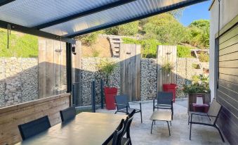 Located in a contemporary eco-designed villa 3 km from the city center, 2 km from the Nartelle beach, in the golf area.