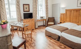 Arrivés trop tard, la personne de l'accueil nous a fait confiance en nous déposant les clefs directement dans la chambre. Belle chambre spacieuse, propre, bonne literie. Petit dej' ,à l'hôtel des deux forts, buffet avec un grand choix, qualité correct.