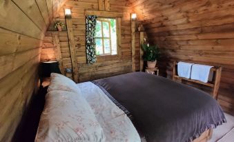 Choose Juniper, our cosy Pod and you will be greeted with a kingsize bed, table and chairs, bespoke furniture and handmade furnishings. You also have an outside gas stove and log burner on your private patio. Perfect for a couples romantic getaway.