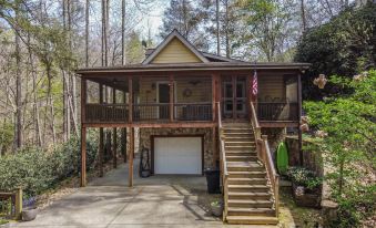 Located on 1.5 acres with a waterfall on one side and a stream below, The TrainStation is a peaceful and private home for those wanting to rest and recharge. Take the stairs that lead directly to the creek and wade in the refreshing water or grab your fishing pole! After a day of exploring enjoy a glass of wine on the wrap-around deck overlooking the waterfall or in the hot tub and let your stress melt away.