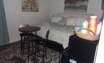 Very quaint little room. About the size of a hotel room. Wonderful king bed mattress (although bed is quite tall) and linens, the sitting area is a twin daybed. Older build and “rustic” handyman work. Pretty clean. Host was friendly and accommodating. Backyard gets really muddy during rain, but would be nice in better weather. Not handicap accessible, though because path is very narrow on a slope. Host has dogs in connecting yard. Host cooks great smelling food which can be smelled through the ventilation system In the other part of the house. :-)