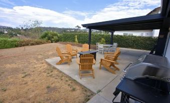 Step outside to your private backyard retreat: a large patio with a shaded pergola, outdoor dining, a fire pit, and panoramic canyon views. Whether you’re sipping coffee at sunrise or stargazing at night, the outdoor space is the perfect place to unwind.