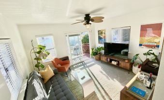 Located just 2 blocks from the ocean, this upper unit of a duplex in Ocean Beach is just a short walk to the water and the heart of OB. With new flooring, paint, AC/heating mini-split, fixtures, & furniture, this retro beach getaway is a comfy, quaint throwback, sure to make for a relaxing beach vacation. Free street parking. Private balcony. Whole house water filtration. Walkable to everything! About pets:Pets allowed: dogs less than 20 lbs per pet (limit one pet total).Deposit required.About checkOut:Check out before 11:00 AM.About children:Children allowed: ages 3-17.N/a.About checkIn:Check in after 4:00 PM.About smoking:Smoking is not permitted.About minBookingAge:Minimum age to rent: 24.About events:No events allowed.