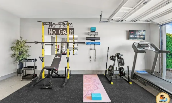 Fitness room in garage.