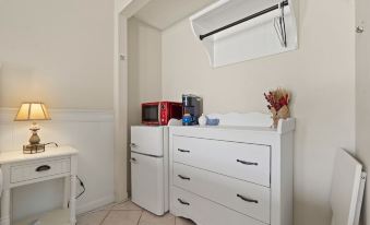 Fully equipped with a coffee bar, mini fridge, and microwave.