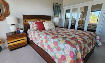 We enjoyed our stay here for a long weekend. We loved all the art in the condo, so much fun to walk around and admire. The bed was very comfortable and we had everything we needed. This complex had all ages and there were quite a few families with little ones enjoying the pool. We are beach people so we plopped down on at the beach until it got too windy for the umbrella. Easy and quick to get into town. A bit noisier than we expected, but this city is growing like mad and is more vibrant than ever. Thank you Teresa for being so prompt in answering our questions.
