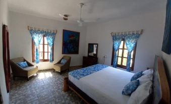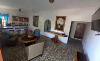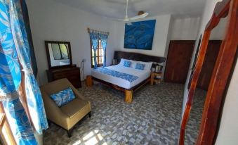 Casa El Delfin is made up of three separate apartments each with their own private entrance and all equipped with consistent WiFi access and air conditioning. All windows can be open and have screens. All beds have attached nightstands with lamps and electricity. There is a dresser and sitting area in each bedroom. There is also a rooftop bungalow/palapa available for renting.