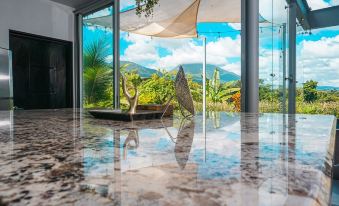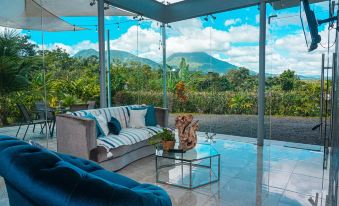 Welcome to your glass sanctuary, a unique short rental house seamlessly blending with nature. No walls, just floor-to-ceiling glass, offering an immersive experience where you can witness the dance of lush greenery and monitor the nearby volcano from the comfort of your living space. Awaken to the symphony of birds, perfect for avid birdwatchers, and visit the famous El Salto River at 2-3min away from the house.