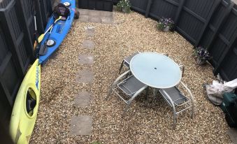 On the ground floor is cloakroom and lounge/kitchen/diner with smart TV, Table seating six and a leather sofa. Patio doors lead to enclosed rear garden. Kitchen: with gas hob, electric oven, microwave, fridge freezer, Tassimmo coffee machine and dishwasher.About pets:Pets allowed: dogs less than 55 lbs per pet (limit 2 pets total).About checkOut:Check out before 11:00 AM.About children:Children allowed: ages 0-17.About checkIn:Check in after 3:00 PM.About smoking:Smoking is not permitted.About minBookingAge:Minimum age to rent: 21.About events:No events allowed.