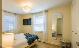 Retreat to one of our two inviting bedrooms, each furnished with brand-new, hypoallergenic mattresses for a restful night's sleep. The master bedroom boasts a luxurious queen bed and a 4K smart TV, while the second bedroom offers one queen bed and two cozy twin-size beds, also equipped with a 4K smart TV.