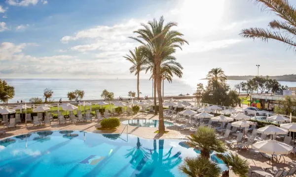 Hotel fresco di restauro, situato in una delle spiagge più belle dell'isola, in una zona prettamente turistica. Struttura con tutte le camere fronte mare, la nostra era al quarto piano, curatissima e pulitissima,come del resto tutto l'hotel! Personale di alto livello, consiglio vivamente di consumare al bar in piscina, cocktail buonissimi. Di altissimo livello anche la cucina, con buffet sia colazione che cena con prodotti di qualità, colazione sia dolce che salata, rifornita di qualsiasi pietanza. La cena variava ogni giorno ma veramente una proposta ricchissima e ripeto, di alta qualità. Unica nota diciamo "discutibile" , e per questo motivo non do il punteggio pieno, è l'orario dell'apertura-chiusura del buffet della cena, con apertura alle 18.30 e chiusura alle 21; Favorendo così la maggior parte della clientela di origine Tedesca (90% di clientela di questa zona). A mio avviso, togliendo un po di tipicità spagnola, e vincolandoci nelle attività giornaliere. Concludo dicendo che consiglierei questa struttura, ha tutto quello che serve per una vacanza in totale relax, pulizia e buon cibo.