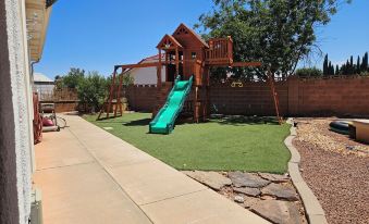 This Santa Clara studio boasts 1 inviting bedroom with a queen bed and a futon. The cozy space includes a bathroom with a shower and essential amenities like a hairdryer. Guests can relax in the peaceful atmosphere and unwind after a day of exploring. Fall in love with Santa Clara and enjoy the magic it has to offer. Enjoy the spacious backyard with putting green, pool, playground for the kids, BBQ and plenty of room for your pets. Fully stocked with towels, plenty of bedding, toiletries and mini kitchenette with a small fridge, microwave, air fryer, Keurig and dishes. After a day enjoying the many recreation opportunities of Santa Clara and the surrounding area relax by the pool or enjoy binging your favorite show on Netflix. Take a day trip to Zion or Lake Powell or just stay in and practice your putting, swim or just plain veg!About pets:Pets allowed: dogs less than 20 lbs per pet (limit 2 pets total).About checkOut:Check out before 11:00 AM.About children:Children allowed: ages 0-17.About checkIn:Check in after 4:00 PM.About smoking:Smoking is not permitted.About minBookingAge:Minimum age to rent: 21.About events:No events allowed.