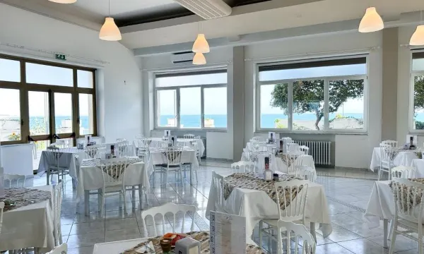 abbiamo soggiornato per un matrimonio per una notte e devo dire per fortuna... parto con dire che avevamo prenotato una camera normale € 110,00 e il giorno dopo la nostra prenotazione ci chiamano per dirci che le uniche stanze disponibili erano con vista mare e nostro malgrado abbiamo accettato (€ 40,00 in + alla prenotazione originaria) il 28 mattina arriviamo e dopo il pagamento al check-in della camera € 150,00 + un ombrellone e due lettini € 30,00 saliamo in camera e scopriamo nostro malgrado che la vista era sul parcheggio e che il mare si scorgeva solo lateralmente.... così scendo vado alla reception e la ragazza ci dice che le camere vista mare erano in restauro e che al massino ci poteva spostare in una camera leggermente più avanti così saliamo per vedere la stanza e poco cambiava così scendiamo di nuovo ma la ragazza stava facendo un altro check in e non ci ha proprio calcolati anche se io le ho detto che avrei fatto una recensione negativa ma a lei poco è importato.... così abbiamo preso due acque un succo di frutta e un'aranciata stavamo per pagare e la ragazza non ha voluto i soldi (pensa di essersela cavata con € 10,00??????) se vi spacciano la camera con vista mare non ci credete STANNO RISTRUTTURANDO!!!!