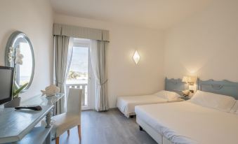 Struttura molto carina sul mare con Accesso diretto alla spiaggia! Le condizioni dell albergo sono buone e si vede che è stato migliorato da poco ! Stanze molto belle , e vista sul mare mozzafiato. Le stanze Dispongono di frigobar , letti molto comodi , bella TV e accessori e cassaforte. Il personale dell albergo gentilissimo e disponibile, a partire dalla reception ad arrivare alla sala colazione e al bagnino . Tutti veramente molto carini e disponibili. Si può mangiare sul terrazzo vista mare e la sala colazioni è direttamente su un terrazzo veranda vista mare molto rilassante. Un po' scarsa purtroppo la pulizia giornaliera delle camere durante il soggiorno , poca accortezza per la carta igienica finita e il sapone nella doccia , davano giusto una tirata al letto e svuotavano i cestini , hanno spazzato solo una volta in un soggiorno di 5 notti e mai lavato . Ma nel complesso ottima struttura basta correggere queste cose e si ha veramente un buon soggiorno al mare . Piccolo parcheggio. Struttura dove tornare volentieri.