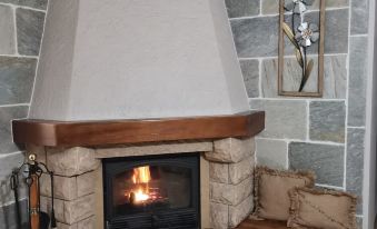 The house has an expanded kitchen/dining room with barbecue and large windows facing the views. In the living room there is a fireplace and satellite TV and there is Wi-Fi throughout the house. From the dining room there is access to a small cellar. There are 2 bedrooms, 1 with a double bed and the other with 2 single beds. Additionally, there is a bathroom with a shower and a toilet.