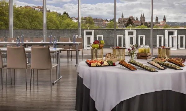 L'hotel NH Collection Santiago de Compostela è un moderno ritiro in riva a un lago, circondato da un folto parco. Servono solo pochi minuti a piedi per raggiungere l'antica città di Santiago, sito patrimonio umanità dell'UNESCO. Pensate per il comfort e il relax, le camere sono insonorizzate, con possibilità di scelta del cuscino preferito, doccia effetto pioggia e lussuosi materassi. L'arredamento è moderno ed elegante, con nitidi bianchi appena "sporcati" dalle tonalità del cioccolato e della mela verde. Affinché l'ospite si senta come a casa, ogni camera è dotata di aria condizionata, macchine per caffè Nespresso e Wi-Fi gratuito. Ogni mattina, la prima colazione propone un'invitante selezione di alimenti freschi, fra cui piatti da cucinare su ordinazione, opzioni senza glutine e vegetariane. A pranzo e a cena, il nostro ristorante Abeiro serve piatti galiziani e internazionali nella sua ariosa atmosfera con delicate viste sul giardino. L'NH Collection Santiago de Compostela dispone di tutti i servizi per una vacanza di relax o per distendersi dopo una lunga giornata di lavoro. Sono disponibili due piscine, una da 750 mq sul terrazzo e una da 1400 mq nei giardini. Per rinvigorire il corpo, gli ospiti possono servirsi della palestra, aperta 24 ore al giorno, oppure un bagno turco e una sauna, seguiti da un massaggio. L'hotel è perfetto anche per eventi, con le sue 6 sale meeting che possono ospitare fino a 350 persone.