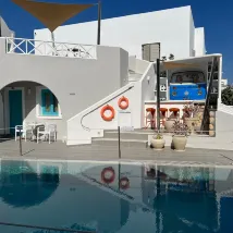 La struttura è molto carina dotata di tutti i comfort, piscina idromassaggio e piscina grande classica. C’è tutto per godersi al meglio la vacanza a Santorini. Pensavo fosse molto più vicina al centro di fira dato le recensioni ma comunque con massimo 20 minuti di camminata ci si arriva. Del resto nulla da lamentare, pulizie giornaliere, refill gratuito di acqua da bere nel frigo bar, personale gentile e cortese e sempre disponibile su wp.