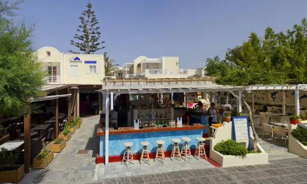 We verbleven in Dolpins. Vanuit hier snel bij het strand, de vele restaurants en winkeltjes. Op loopafstand van het bussstation, waar je o.a de bus naar Fira of Oia kunt nemen Ons verblijf was netjes, twee bedden met balkonnetje eraan, klein keukentje en badkamer. Prijs-kwaliteit was prima De jongens aan de receptie altijd even vriendelijk en behulpzaam.