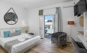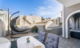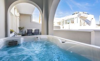 Ho soggiornato con la mia famiglia in quest’ hotel una notte il 13 Luglio. Il giorno dopo avevamo il traghetto x Naxos. Posizione perfetta in pieno centro di Fira….. Ragazza della reception adorabile….nonostante la nostra difficoltà con l’inglese ha cercato in ogni modo di farci sentire a casa e fornirci ogni comfort possibile. Camera fantastica….nuovissima…..dotata di frigo bar e condizionatore…..con all’esterno della camera una vasca idromassaggio ad uso esclusivo solo nostro e in funzione h 24….Di sera poi si accendono led che cambiano colore e creano un’ atmosfera magica. Inoltre sul terrazzino c’è anche una poltrona a dondolo e un tavolo con le sedie.
