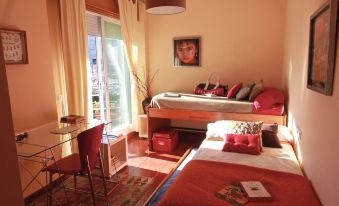 It has 2 large rooms, the first is a suite with bathroom and reading area, and the other room has 3 beds and terrace.
