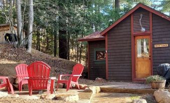 Rock Ledge is an authentic, 100-year-old Adirondack cabin. It has great features like vaulted wood ceilings, live edge siding (so Adirondacky!) and a unique, handmade window. The cabin is small (around 200 sf) but includes a lot of great features to make you feel at home!