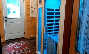 The sauna is a brand new SalusHeat, ultra-low EMR infrared. What could be better than a hot sauna after playing in the outdoors?! It seats 2 and will warm you up and chill you out at the same time! Bluetooth speakers for your favorite music or maybe a meditation podcast. Chromatherapy lighting to rejuvenate and restore balance