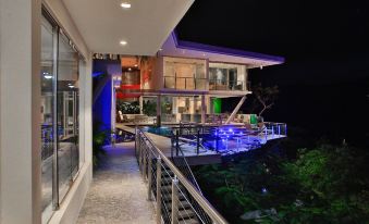 The villa is located in Playa Ocotal on the top of a hill, giving it a truly breathtaking panoramic view of the beach, the ocean, and the stunning mountains and surrounding jungle of Costa Rica. With that, the house is still only 8 minutes walk from the beach, accessed by your own staircase. Additionally, the property is 6 minutes drive from the Playas Coco Downtown, as well as only 32 minutes away from the Liberia Airport.