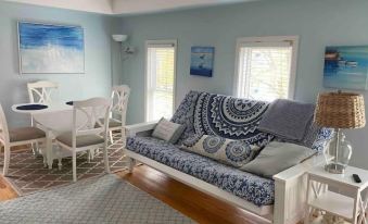 Located one block away from restaurants and shopping in the heart of Saugatuck, this 1bd 1ba suite has a private entrance, dedicated parking space and all the amenities required for a relaxing stay. Your suite is on the second floor, and includes a small balcony for your morning coffee. The futon couch in the living room folds out to a second queen bed. There are three suites in the home, and each have their own exterior entry door. Quiet neighborhood, easy walk to the shops and dining in town!