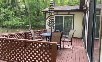 Newly decorated cottage in a serene and peaceful wooded area. Just a quick drive to downtown Saugatuck and Oval Beach. This is an ideal location if you are looking for a relaxing getaway with friends or family. Close to a few amazing walking/hiking trails. This three bedroom cottage is perfect if you plan to relax and love being around nature.About pets:No pets allowed.About checkOut:Check out before 11:00 AM.About children:Children allowed: ages 0-17.About checkIn:Check in after 2:00 PM.About smoking:Smoking is not permitted.About minBookingAge:Minimum age to rent: 21.About events:No events allowed.