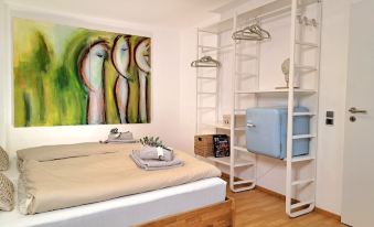Ein weiteres Highlight sind die beeindruckenden Bilder, die, von der Vermieterin selbst geschaffen, den Räumen eine sehr persönliche Note verleihen.