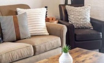 Relax and enjoy trendy furnishings, 2 full ensuites, a full kitchen, vaulted ceilings, granite countertops, rainfall showerheads, washer and dryer in the unit, and contactless check-in!