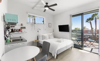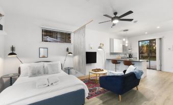 Really nice little studio, worked perfect for my needs. Much better stocked than a standard motel or hotel. Very clean and nicely remodeled, modern. For me the bed wasn’t the best but I’m kinda hard to please when it comes to beds. Probably be fine for most everyone else. Great communication and very willing to make stay easy.