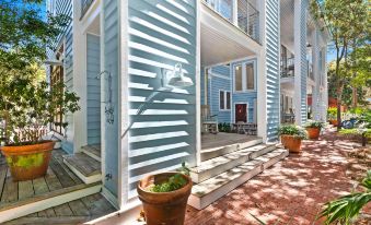 Just for Fun Carriage House offers all the amenities of a larger Seaside home - 2 full baths, full kitchen, in unit washer and dryer, living room, dining area, and outdoor dining on a private porch. You won't find anything else like this in Seaside! Start your day at the beach, stroll up to the pool, and arrive back home in time for lunch and afternoon naps. Finish the day with another swim at the Westside pool, sunset on the beach, and then grab dinner at the Seaside Food Trucks.
